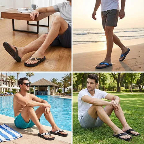 Our Men's Soft Soled Flip Flops are a summer essential, perfect for the beach, comfortable enough for lounging on the sofa, and easily adaptable to various everyday situations.